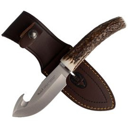 VIPER-11A professional hunting knife for pelting with a fixed blade. Perfectly balanced, designed for hunting enthusiasts. Hookblade blade made of molybdenum-vanadium steel. Handle covered with deer antlers.