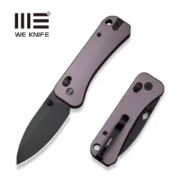 WE-Guthrie Black Titanium/Rose Carbon Fiber, Black Stonewashed, a large EDC folding knife designed by Jason Guthrie. Comfortable Handle with titanium bolsters and carbon fiber, utilitarian 20CV CPM steel Blade, strong construction.