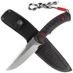 Husky Black Micarta, Satin all-purpose knife with full tang construction in Swedish Sandvik steel. For hunting enthusiasts of people who appreciate active recreation. Flat Grind allows cutting with considerable force. Grips made of durable micarta.