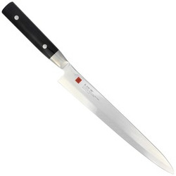 Kasumi Damascus Sashimi 27 with VG-10 stainless steel core finished with 32 ply damascus. Made using the same methods as samurai swords, with a comfortable European pakka wood handle. Note!!! Very sharp!!!