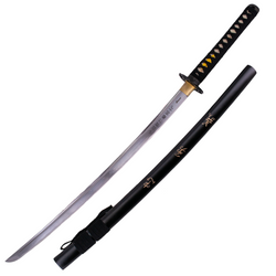 Katana Black Polymer, Satin - a functional training katana with a 1065 high carbon steel blade, classic shinogi-zukuri profile and battle wrap type handle. Perfect for kata practice, presentation and Japanese weapon collection.