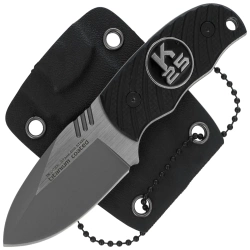 RK-32373 Kraken Neck Knife Black G10, Titanium - Tactical neck knife modeled after the legendary Nessmuk, with full tang construction, titanium-coated 7Cr17Mov steel blade, G10 composite handle and Kydex sheath with chain.