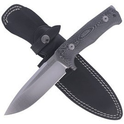 Akechi Black Rubber, Satin is a large fixed blade knife modeled after Far Eastern white weapon designs. Solid stainless steel blade, comfortable handle for a secure grip, and all at a great price. A hit!