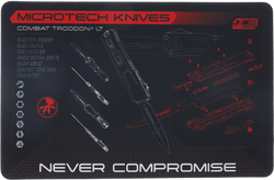Combat Troodon Black Display Mat - a professional presentation mat with graphics of the Combat Troodon model, made of durable PVC plastic, stain-resistant and ideal for knife service work.