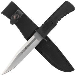 Muela SP-14 Black Rubber, Satin - compact outdoor-tactical knife in Nitro-42 steel with textured rubber handle and leather sheath. The robustness of the construction and ergonomics of the grip guarantee reliability in the field.