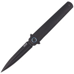 Flame Dagger Black Titanium, Black Stonewashed slim knife with a single-sided stiletto blade with a shape reminiscent of the classic Italian style. Easy to carry, perfectly balanced EDC knife. Designed by Polish knifemaker Michal Zięba.