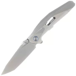 Shadow Tanto Gray Titanium, Satin, an engineering display by the Rike Knives. A large folding knife based on a titanium exoskeleton and an outer casing made of a single piece of titanium. Blade of Böhler M390 steel. Unbelievable quality of workmanship!