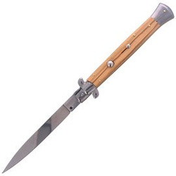 Classic Italian Stiletto Dagger Olive Wood 28 cm traditional Italian spring knife. Hand folded according to the rules of Italian craft. When opening the blade, knife emit a characteristic sound (click) that distinguishes it from other spring knives.