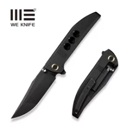 Ezinta Black Titanium, Black Stonewashed, a large EDC folding knife from the WeKnife manufactory. Long clip point blade made of Böhler M390 steel, monolithic handle milled from a single block of titanium. Excellent whole-hand grip and two ways of opening.