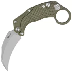 EXO-K Gravity Karambit Green Aluminum, Stonewashed folding knife from legendary Reate Knives manufactory. A show off of the company's engineering in design, a gravity-opening carambit with button lock. Aluminum Handle, N690 steel. Training blade included!