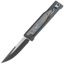 Warlock-X Convergence Black Aluminum, Black Cerakote, a large folding knife with an unusual gravity opening method. Aluminum grips, blade made of proven CPM S35VN steel. Made with pride by American craftsmen!