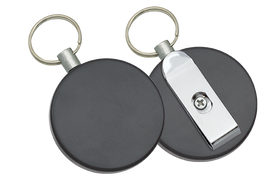 Barbaric Retractor with Clip Black ABS / Mirror Steel, 100cm (16248) - compact EDC accessory with a 100cm drop-down length cord, durable ABS housing. Ideal for organizing your equipment in the field and on a daily basis.