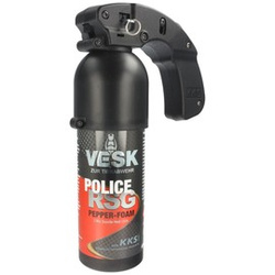VESK RGS Police non-flammable foam pepper gas for professional use with 13.32% OC, 2mln SHU sharpness, 63 ml capacity. Fruit of cooperation between KKS company and officers of the German police's prevention squads. Head with flap and hood