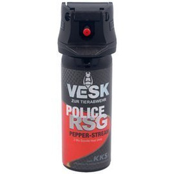 VESK RSG Police 63ml pepper spray with strong concentration of alkalide capsaicin. Non-flammable with an irritating substance in the form of a stream that is little susceptible to atmospheric factors, which makes it effective and, above all, safe for user