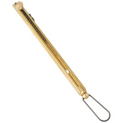 DP533-44, made of brass a tubolar powder flask with valve from the Italian company Davide Pedersoli. Designed for .44 caliber black powder firearms. Features a replaceable 24-grain tip and a reliable spring valve.