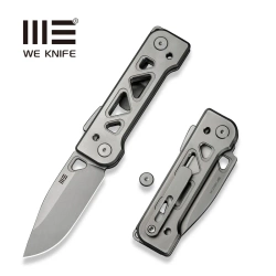 Sine Wave Gray/Satin Titanium, Stonewashed large WeKnife EDC folder. Ergonomic titanium handle for a comfortable grip, premium Böhler M390 steel blade. Opens swiftly with a flipper tab, ceramic bearings ensure smooth and reliable mechanism operation.
