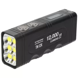 The Nitecore TM12K is an upgrade of the popular TM10K model with a 12,000 lumen burst mode. Equipped with six CREE XHP50 LEDs, the TM12K has a range of more than 250 meters. It retains the sleek, modern style of the previous generation.