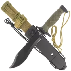 Third Decor Habitat USMC Ka-Bar Style Brown Leather, Black Blade Knife (11593)