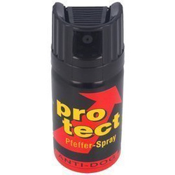 ProTect Anti-Dog 50 ml (Anti Hund) miotacz gazu firmy KKS do obrony przed agresywnymi zwierzętami w tym psami. Skład gwarantuje również obronę przed napastnikiem lub grupą napastników. Dysza CONE wyrzuca substancję drażniącą w postaci chmury.