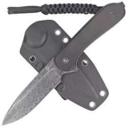 Elementum Fixed Tactical Ebony Wood, Black Damascus, kompaktowy nóż ze stałą klingą, niesamowicie poręczny i łatwy w przenoszeniu. Inspirowany projektem noża składanego Elementum, zdobywcy nagrody noża roku Best Buy of The Year 2021 na targach Blade Show.