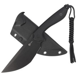 Concept 22 Black G10, Black Stonewashed, mocny nóż EDC o stałym ostrzu projektu Tuffknives. Utylitarny kształt ostrza ze stali N690, rękojeść z G10. Pochwa z kydexu, wyposażona w T-Clip umożliwiający mocowanie do pasa, ozdobny wisior z paracordu.