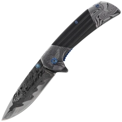 18918 Steel, 3D 3Cr13MoV – kompaktowy nóż składany EDC od Martinez Albainox z pełnostalową konstrukcją i głownią ozdobioną trójwymiarowym wzorem imitującym stal damasceńską. Trwałość i elegancki design w praktycznym formacie.
