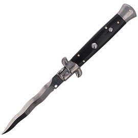 Grande Black nóż sprężynowy OTF, klinga wysuwana z rękojeści. Wykonany zgodnie z zasadami włoskiego rzemiosła nóż firmy Spadon. Szczególną uwagę poświęcono projektowaniu sprężyn, otwarcie musi odbyć w ciągu kilku setnych sekundy, nóż wydaje swoisty klik..