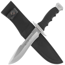 Muela 85-182 pełnowymiarowy nóż ze stałym ostrzem o profilu Bowie wykonany ze stali nierdzewnej Nitro-42.Pokryty ochronnym czarnym wykończeniem, wyposażony w rękojeść wykonaną z gumy i zamaku. Zaprojektowany do zastosowań terenowych i taktycznych.