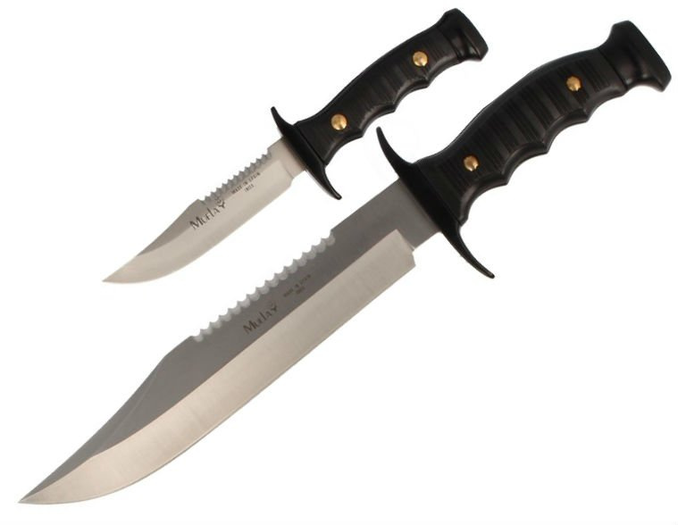 7221-P set of two knives (Kangaroo) - main knife (7221) with blade length 220 mm and auxiliary knife (7101 MT-Bowie) with 100 mm blade. They work well during survival, hunting and household chores - as everyday knives. Manufactured by the Spanish company Muela with over 50 years of experience in knife production