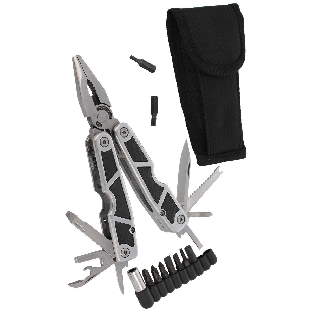 108100 - massive, full-size multi-tool with modern design by the German Herbertz Solingen Company at a great price! Covered with a matte non-reflective coating. Equipped with a set of necessary tools useful in many everyday situations. Nylon case and 10 bit set included.