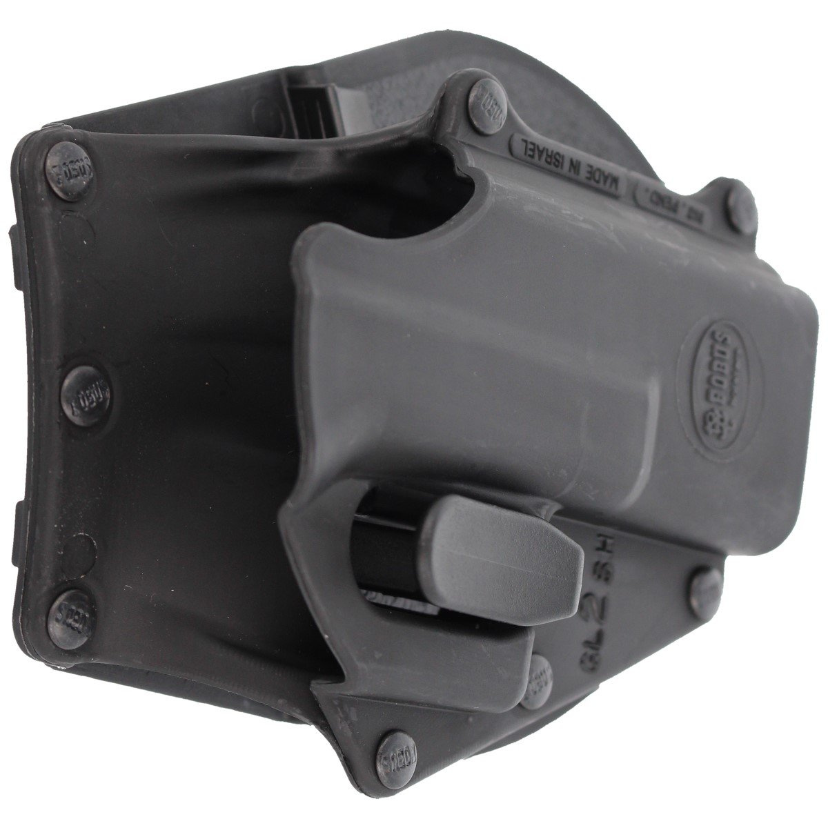 GL-2 SH open outer OWB (Outside the Waist Band) type holster from Israeli company Fobus suitable for belt carry. The SH series focuses on safety. Equipped with the Trigger Guard Locking System mechanism, it solves the problem of securely carrying and retrieving the weapon. The holster protects the weapon from damage and does not tend to move.