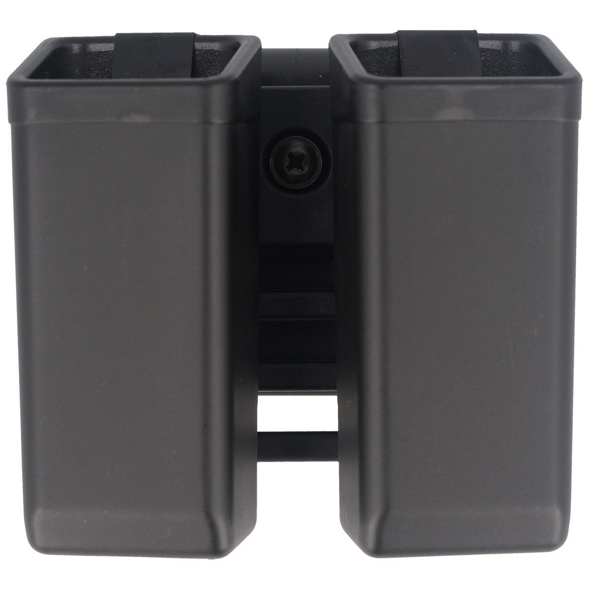 Polymer open-type loaders for 2 double-row magazines cal. 9mm/.40/.45 with belt anchor type UBC-03 in black by the Czech company ESP. Internal spring holds magazine, allows for quick withdrawal. Fits m.in. Glock, Walther P99, H&K 9mm/.40, Beretta 92/96/M9, Springfield XD, Ruger, Browning HP, SIG Sauer P226/P229, S&W MP9, CZ 75 Compact, Taurus 92/99.