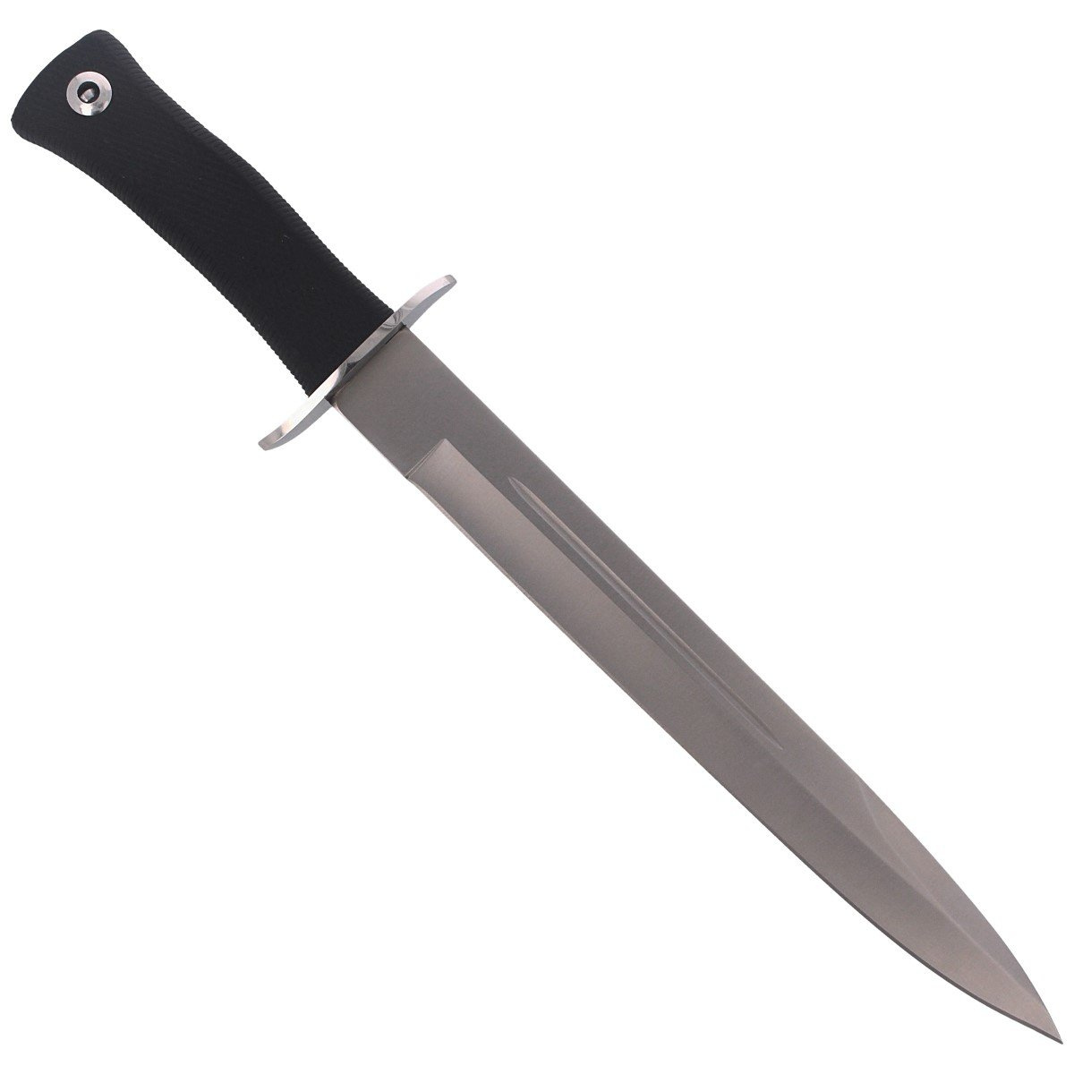 Blade - with false blade and a Spear Point profile, 4.4 mm thickness. Hardened blade in the range of 57-58 HRC, covered with a non-reflective Satin Finish coating (semi-matte) eliminating reflections. Manufactured from a smolybdenum-vanadium steel X50CrMoV15. A blade with good mechanical properties and long-lasting sharpness. A blade with good mechanical properties and long-lasting sharpness. Concave cut (Hollow Grind), Smooth blade (Plain type). Steel on both sides of the blade at the base of the blade prevents the hand from slipping on the blade.