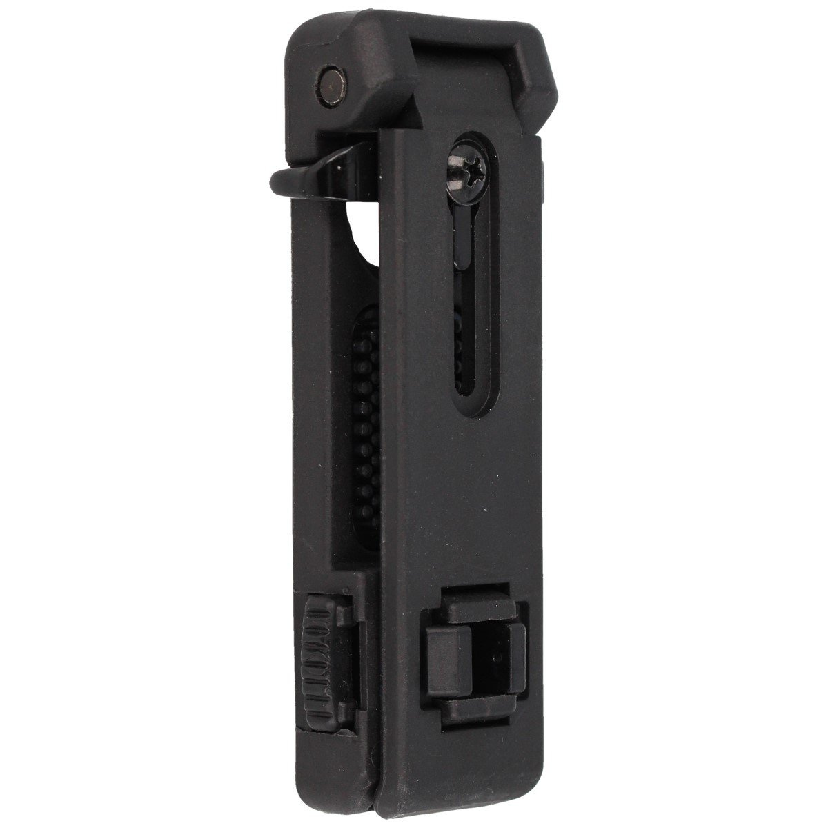 - UBC-02 optional rotatable 360° fastened transport clip on belt or MOLLE tapes. Fastening to ESP pouches / holsters for magazines, telescopic batons, stun guns, torches, pepper gases. The holder allows fast pinning / detaching with one hand...