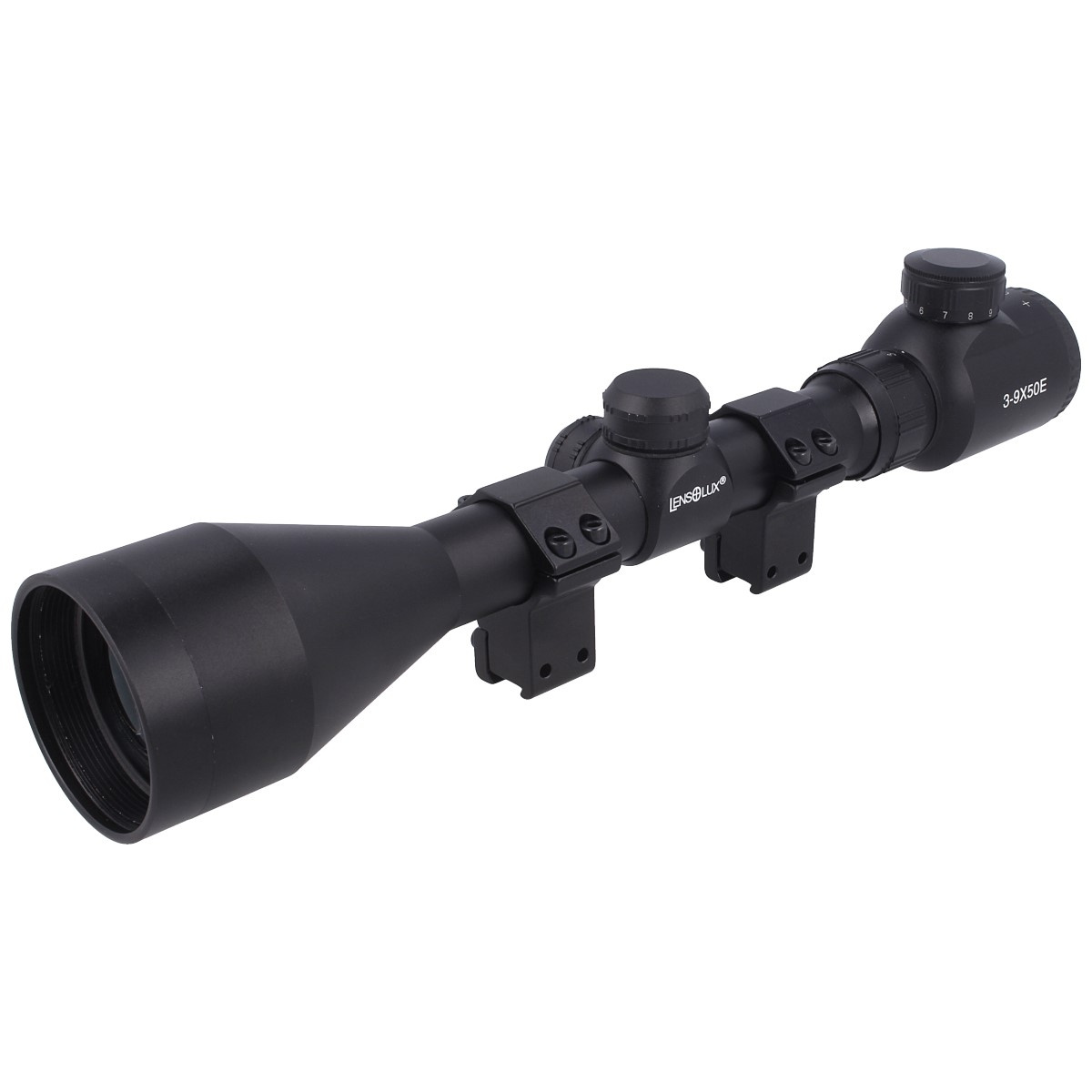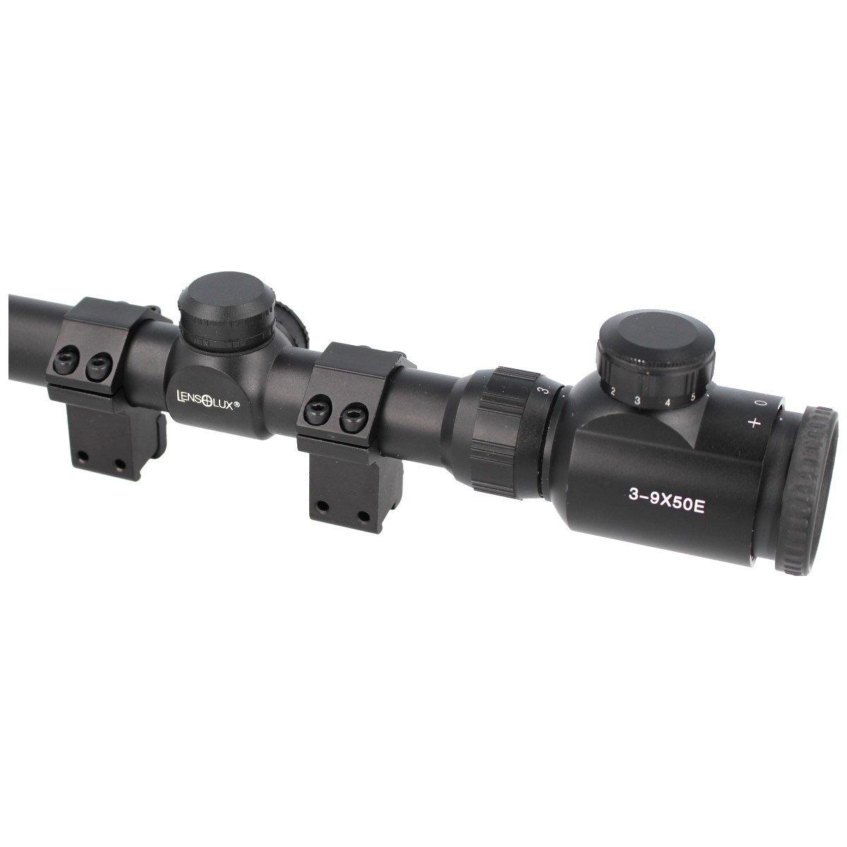 - 19312, Lensolux telescope with illuminated 4 Red-Dot crosshairs. Variable magnification 3-9x, lens diameter 50mm. Wide angle, excellent bright image. Viewfinder with excellent twilight performance and for aiming at smaller targets at long distances