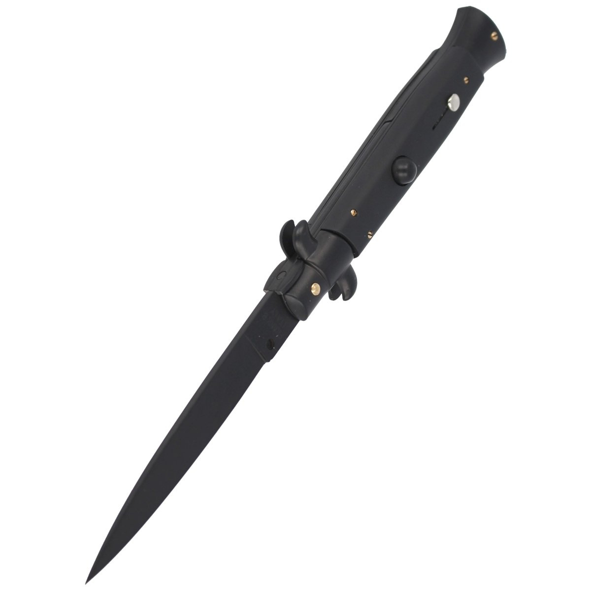 Classic Italian Stiletto Black Dagger 23 cm, traditional Italian spring knife. Completely hand-made according to the principles of Italian craftsmanship, Frank Beltrame Stiletto knives have become famous all over the world due to their extreme lightness and durability. Thanks to its properties, the Italian dagger is suitable for use in any environment, from hunting to camping. A solid, durable construction, a strong spring opening the blade is a feature of the classic Italian spring knives Frank Beltrame.