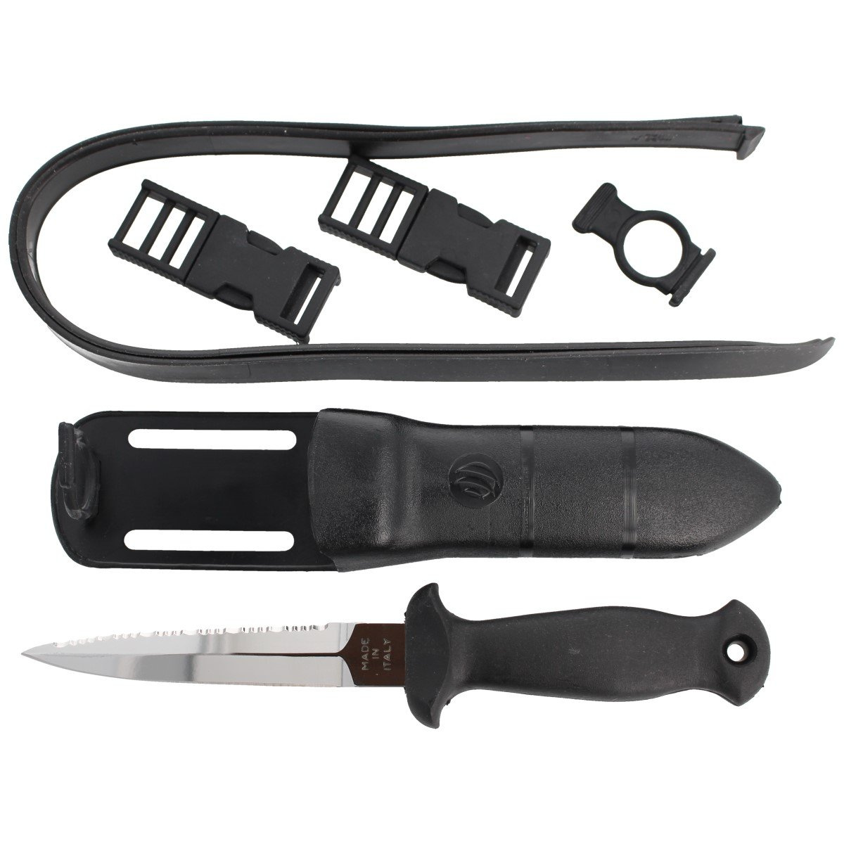 SUB 11 D BLACK fixed blade Stainless Steel diver's knife with full tang construction. Manufactured by the Italian company MAC Coltellerie. Suitable for use during diving expeditions and on land.