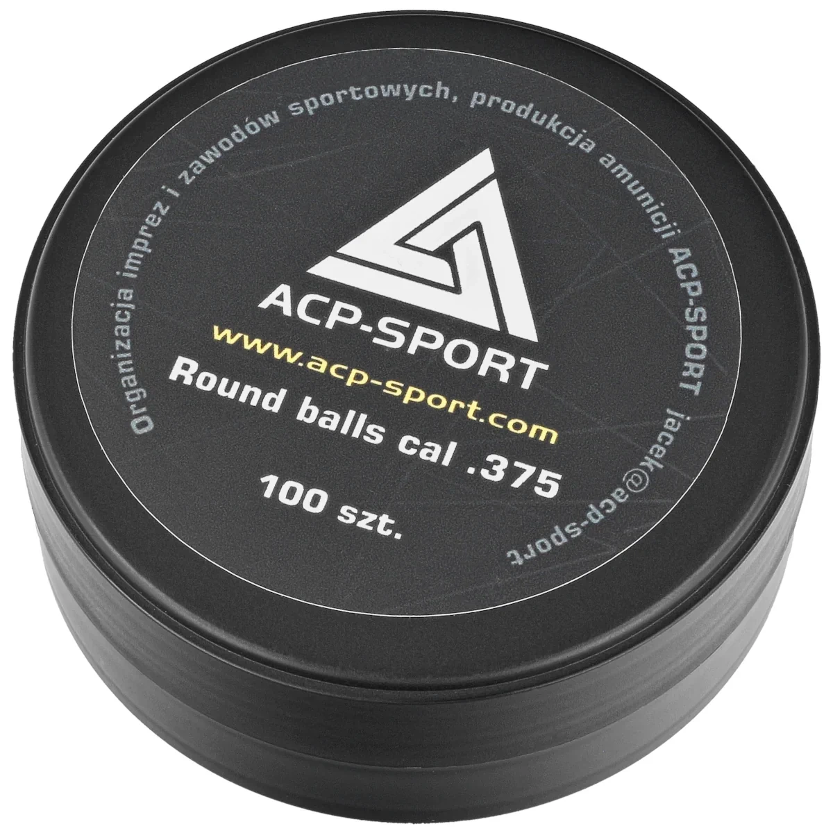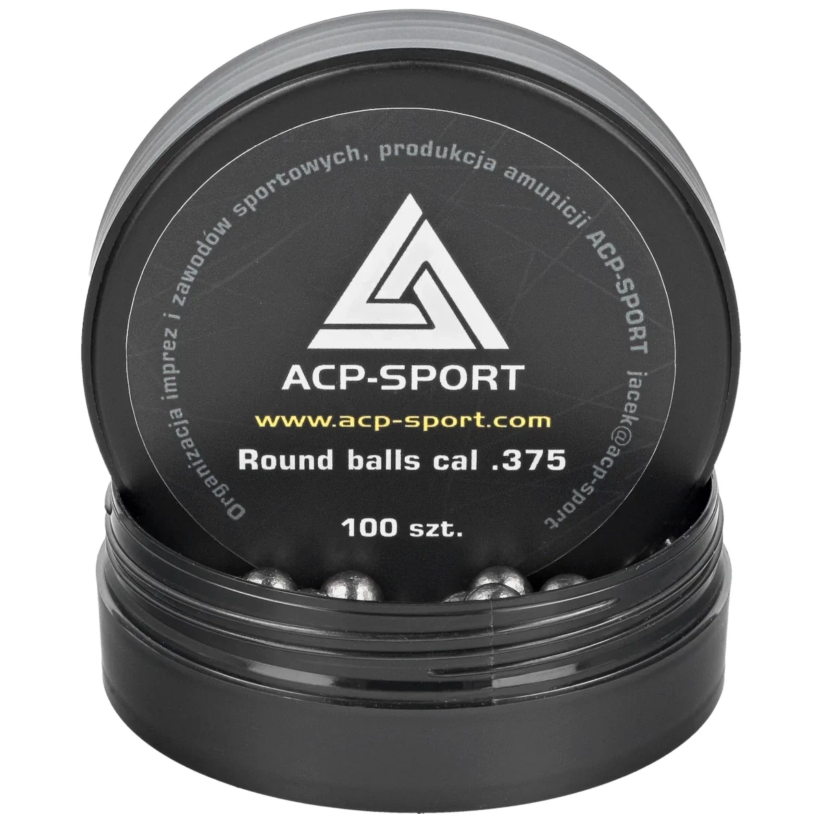 Nadkalibrowe polerowane kule ołowiane (80 gr) firmy ACP-Sport w kalibrze 375 (9.52 mm) do broni czarnoprochowej. Wykonane z czystego ołowiu bez udziału ołowionośnych materiałów wtórnych. Dzięki poddaniu kul procesowi obtaczania, pociski nie posiadają one nadlewek, niedolewek, szwów i innych wad spotykanych w produktach niższej jakości. Przeznaczone do strzelania z kapiszonowych rewolwerów m.in. Remington, Colt, pistoletów oraz karabinów czarnoprochowych w kalibrze .36. Opakowanie zawiera 100 szt.