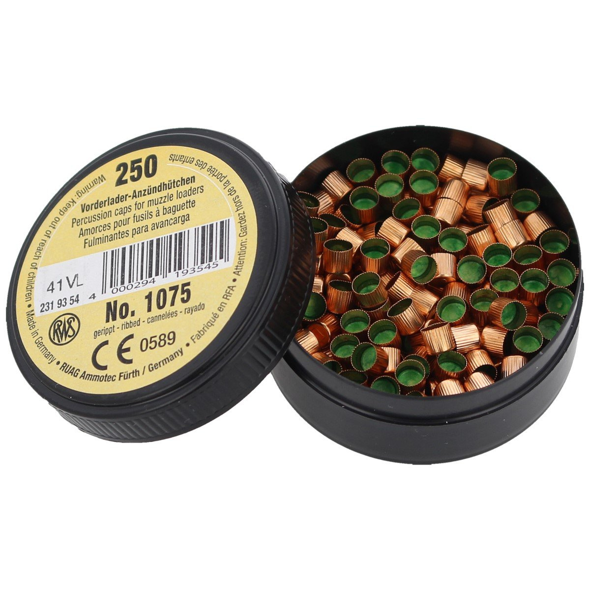 - Excellent fireplace caps in a large package of 250 pieces. german brand RWS 1075 (4 mm). Designed for blackpowder weapons: Pietta revolvers (Remington, Colt Peacemaker, Colt Paterson, Colt Navy, Colt Army) pistols and rifles...
