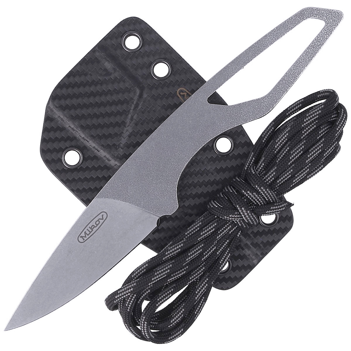 Imitation Carbon Fiber Look sheath made of Kydex material perfectly secures the knife against falling out. Holes in the case allow you to attach the holster to your belt or to your equipment using the paracord cord included in the kit.