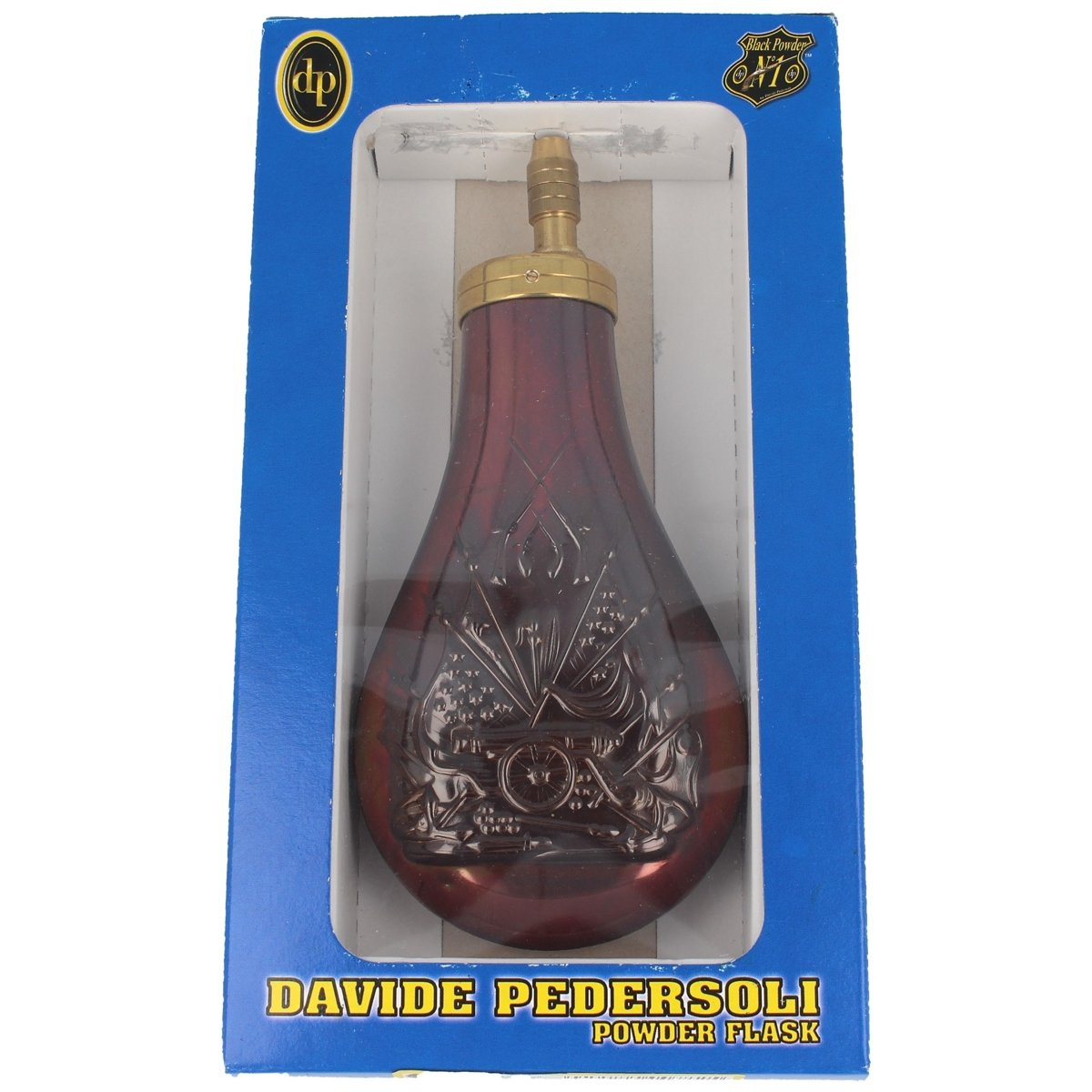 - DP520 Colt Pattern Powder Flask by Davide Pedersoli features an adjustable spout for precise powder measuring. For black powder firearms of various calibers, including rifles, pistols, revolvers. Made of lacquered copper and decorated battle scene motif.