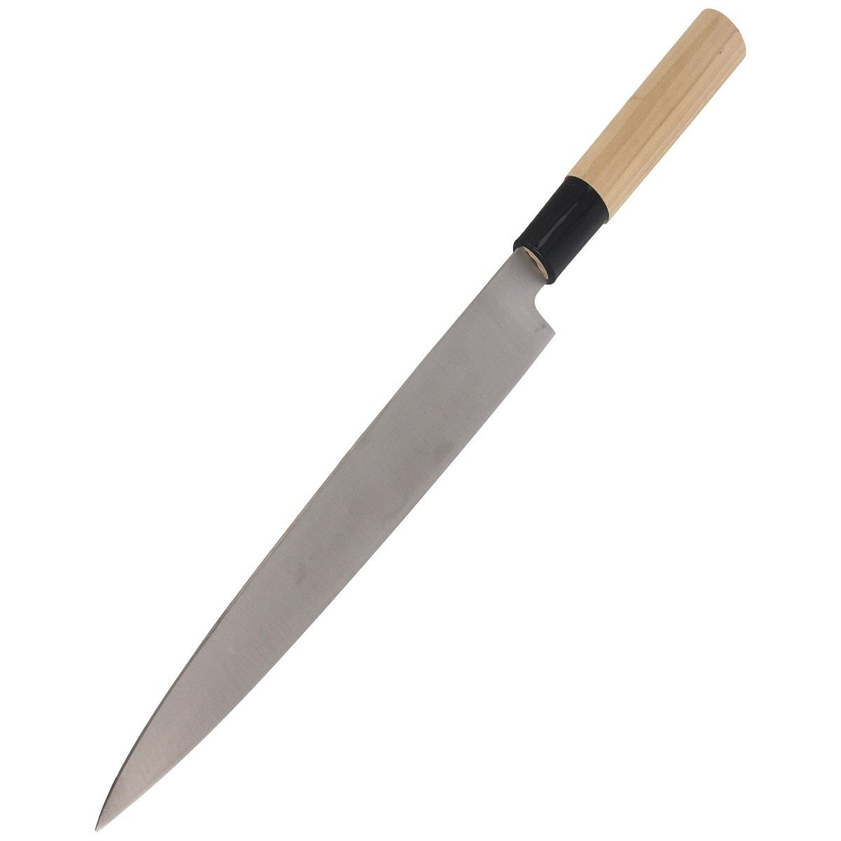 • Traditional Japanese Sashimi knife also called Yanagiba. Created for the production of traditional sushi or sashimi. It perfectly portions, fillets, pulls the skin, and thanks to one-sided sharpening, it also cuts into thin slices. Made in Japan.