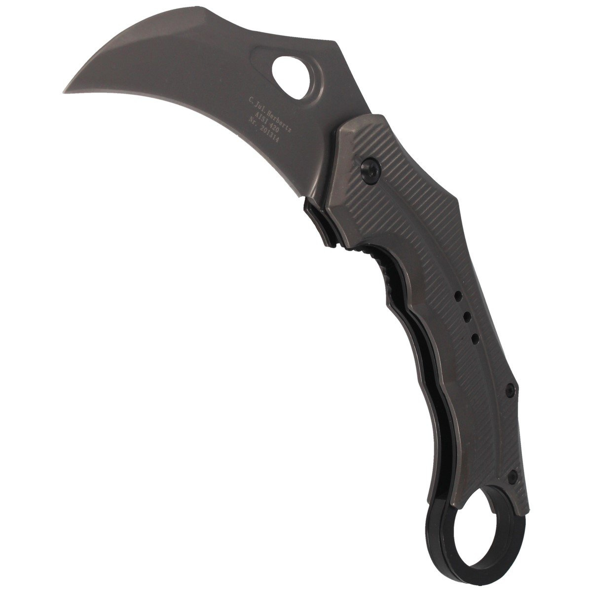 - Concept of an advanced fighting knife from the German brand Herbertz Solingen shows how traditional karambit knives originating from Southeast Asia have evolved. Hawkbill blade, thumb hole, Tip-down clip - a folder to be had!