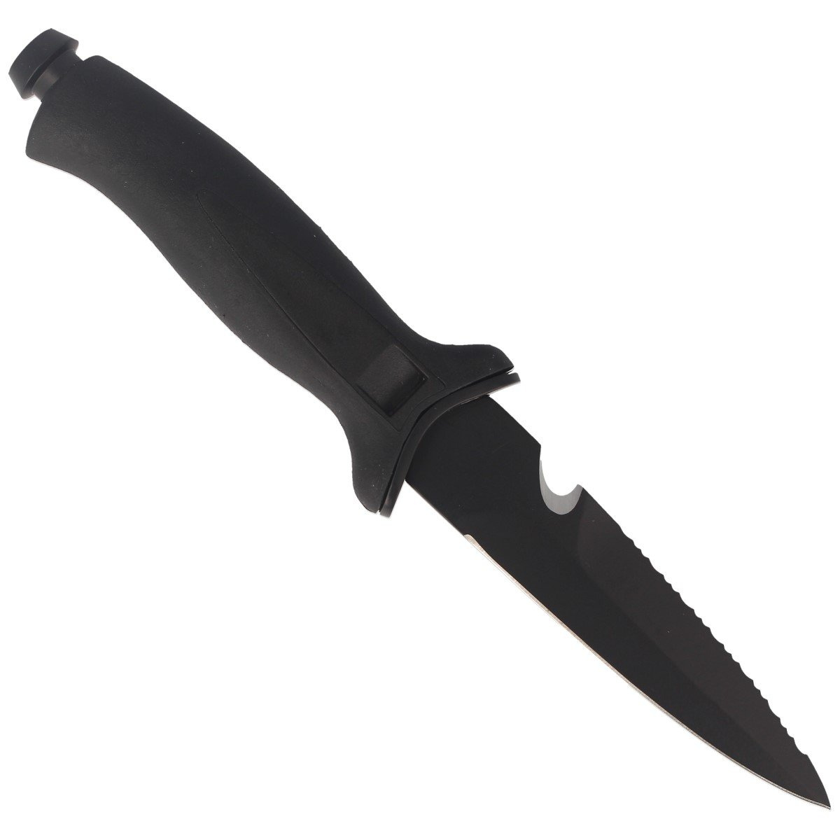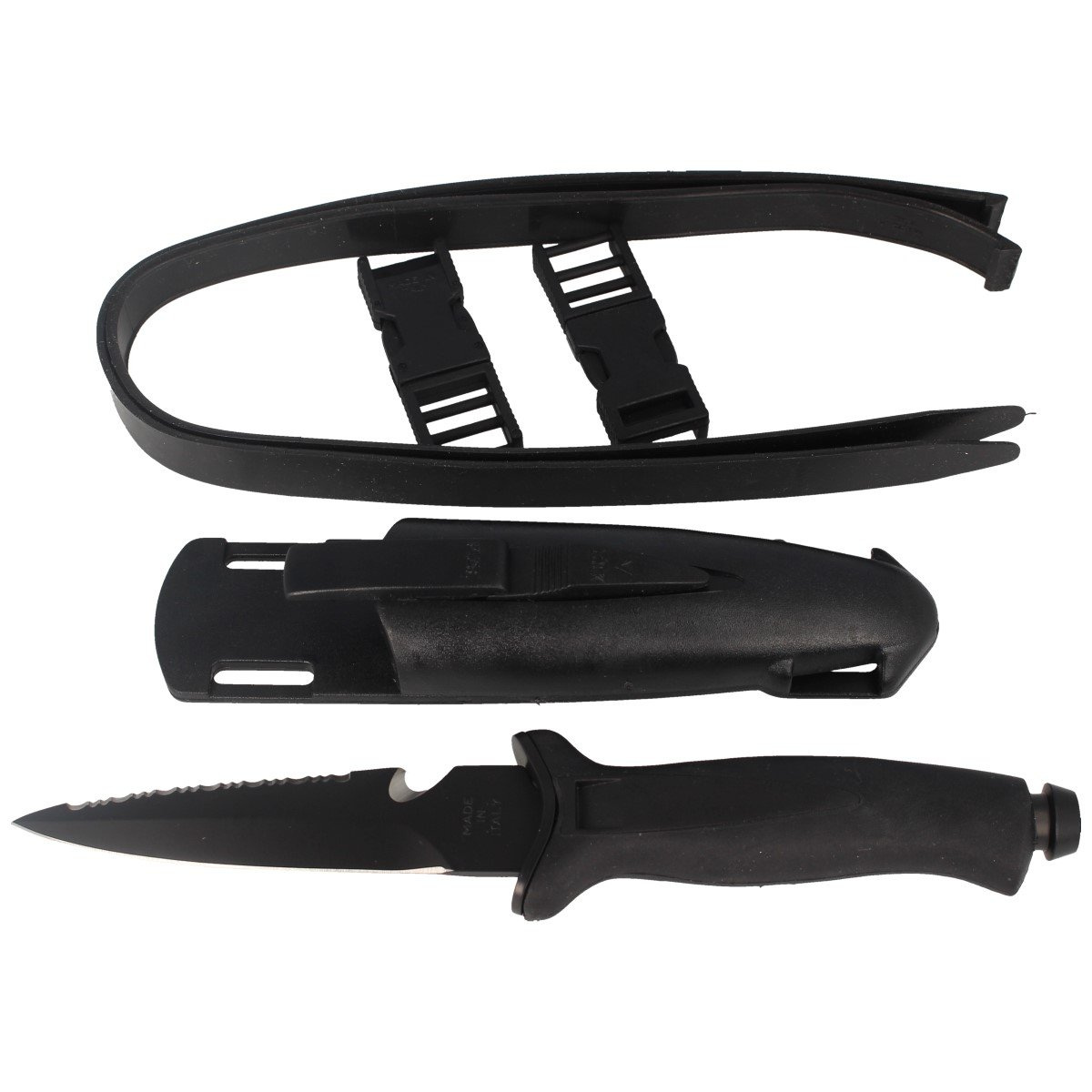 AQUATYS STILETTO 2, a full tang construction diver's knife with a matte black coated blade. Manufactured by the Italian company MAC Coltellerie. An ideal tool for use during diving expeditions and shore work.