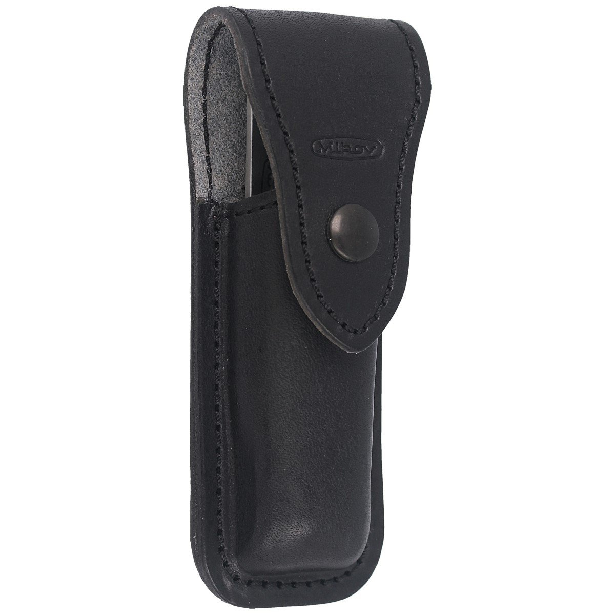 Case - fastened with a clasp. Made of natural leather in black with embossed producer logo. The scabbard has a belt or equipment mount allowing to carry the knife in an upright position.