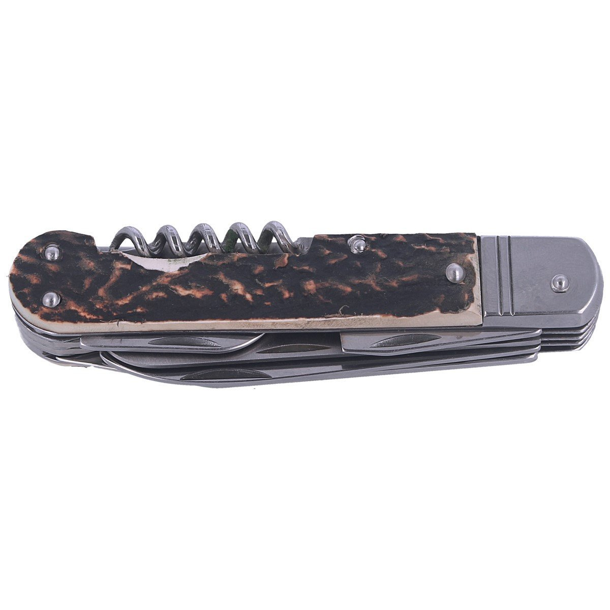 Handle - covered with linings imitating deer antlers (red deer stag) in natural horn color, which provides an exclusive look and a comfortable, secure grip. Ergonomic and profiled for hand, so the knife fits very well in the hand, does not slip, you can easily operate it in any conditions. End of the blade bolster made of stainless steel.
