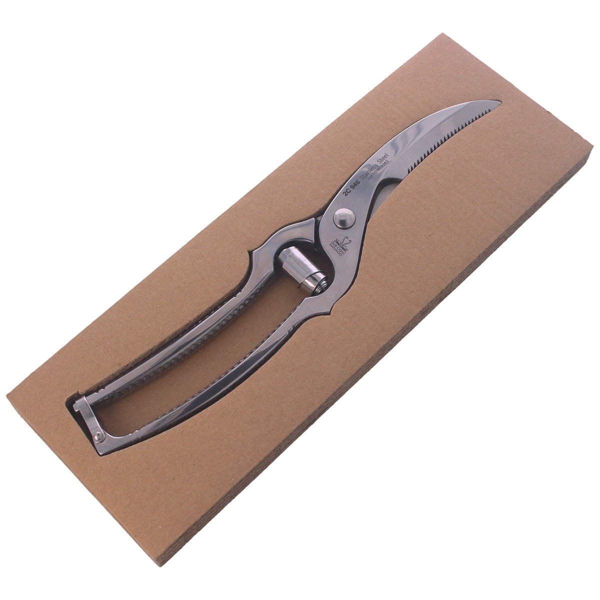 • Gazzella, steel scissors for portioning poultry: chicken, turkey, duck by Italian brand Due Cigni. Made of stainless steel. Thanks to the special lever during slicing, no effort is needed. The length of the shears including the handle is 25 cm.