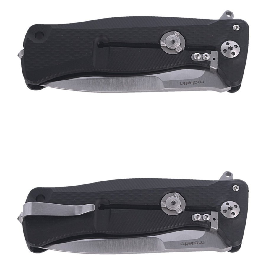 RotoLock - lock with a patented additional locking mechanism in the shape of a titanium shield by Gianni Pauletta. When the knife is open, turning the RotoLock approximately 1/8 of a turn clockwise wedges the locking mechanism, preventing unintentional release of the blade lock, provides the same stability of the blade as in knives with a fixed blade.