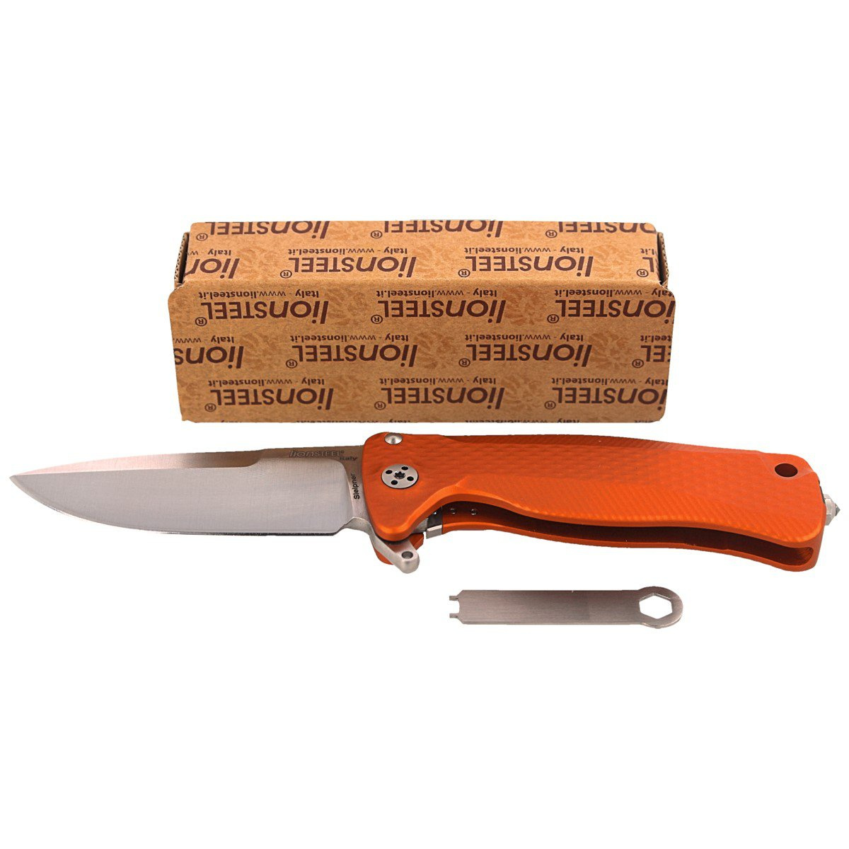 - SR22A Orange Aluminum, Satin Blade. EDC folder manufactory LionSteel with exclusive Solid technology. A smaller version of the SR11 folding knife, which was an evolution of the historic SR-1 model and winner of the most innovative design at the Blade Show
