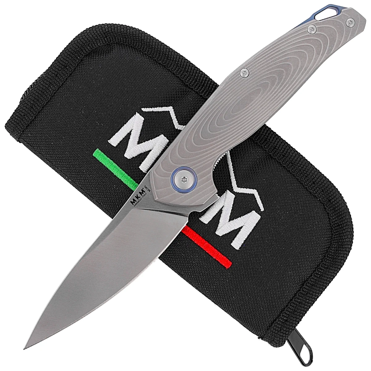 Goccia Bead Blasted Titanium, Satin when Danish knifemaker and knife designer Jens Ansø showed his custom model Neo, it became the dream of the "perfect knife" for many knife lovers. In cooperation with MKM, a top-quality production version of this model called Goccia was created. Goccia means "drop" in Italian and is meant to symbolize the first water-powered hammers in the forges that started the knife industry in Italy. The name is also reflected in the concentric ellipses carefully milled into the handle facings, which even mesmerize with their changing surface textures.